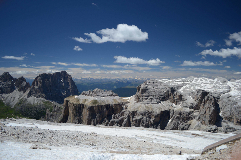 Weiter geht es, aufgrund der guten Wetteraussichten, auf die Dolomitenrundfahrt. In (meist) stiller Ehrfurcht betrachtet der Chor die gewaltigen Felsmassive und die Fahrkunst unseres Busfahrers Wolfgang. Unterwegs versorgt uns Gabor in seiner Funktion als Guadlkramer mit Süßkram und einem Schnaps um die Serpentinen besser zu vertragen. Selbiger hat spontan die wundervolle Idee, mit der Seilbahn von 2240m auf 2950m Höhe zum Sass Pordoi zu fahren und die Aussicht auf der "Terrasse der Dolomiten" auf die Marmolata zu genießen. Außerdem ist hier der perfekte Ort um, ebenfalls spontan, "Das Morgenrot" zu singen - auch um ca. 15:00 Uhr, die Kulisse passt einfach zu gut. Nach diesem Höhepunkt (in mehrfacher Hinsicht) des Tages geht die Reise für diesen Tag dem Ende zu. Gegen 18:00 Uhr kommen wir in unserer Unterkunft im Gasthof Schwaiger an und lassen den Abend in gewohnt gemütlicher Weise ausklingen.